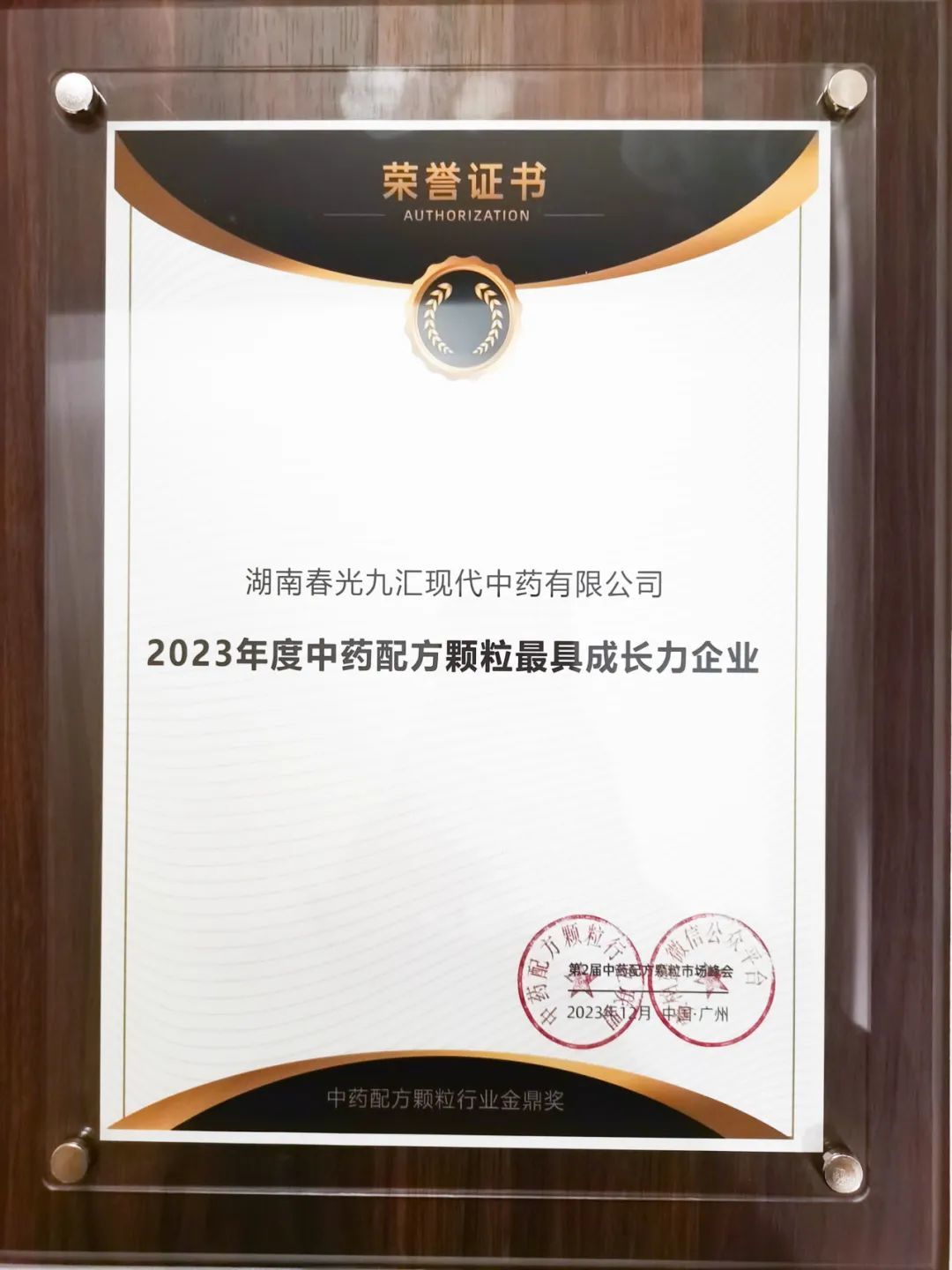 峰会举行了中药配方颗粒行业金鼎奖颁奖仪式,公司获评“2023年度中药配方颗粒最具成长力企业”。