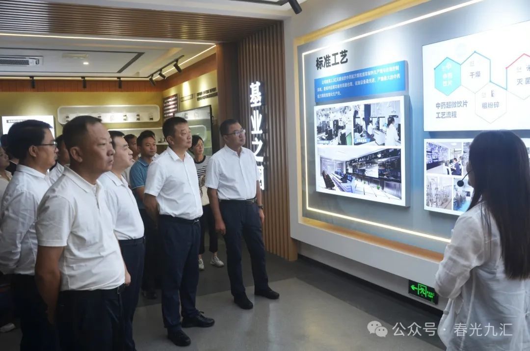 考察团一行先后参观了公司展厅和中药配方颗粒生产线提取车间、追溯智能自动外包生产车间。详细了解公司发展历程、主导产品、生产经营情况以及在中医药领域研发创新等方面取得的成果。