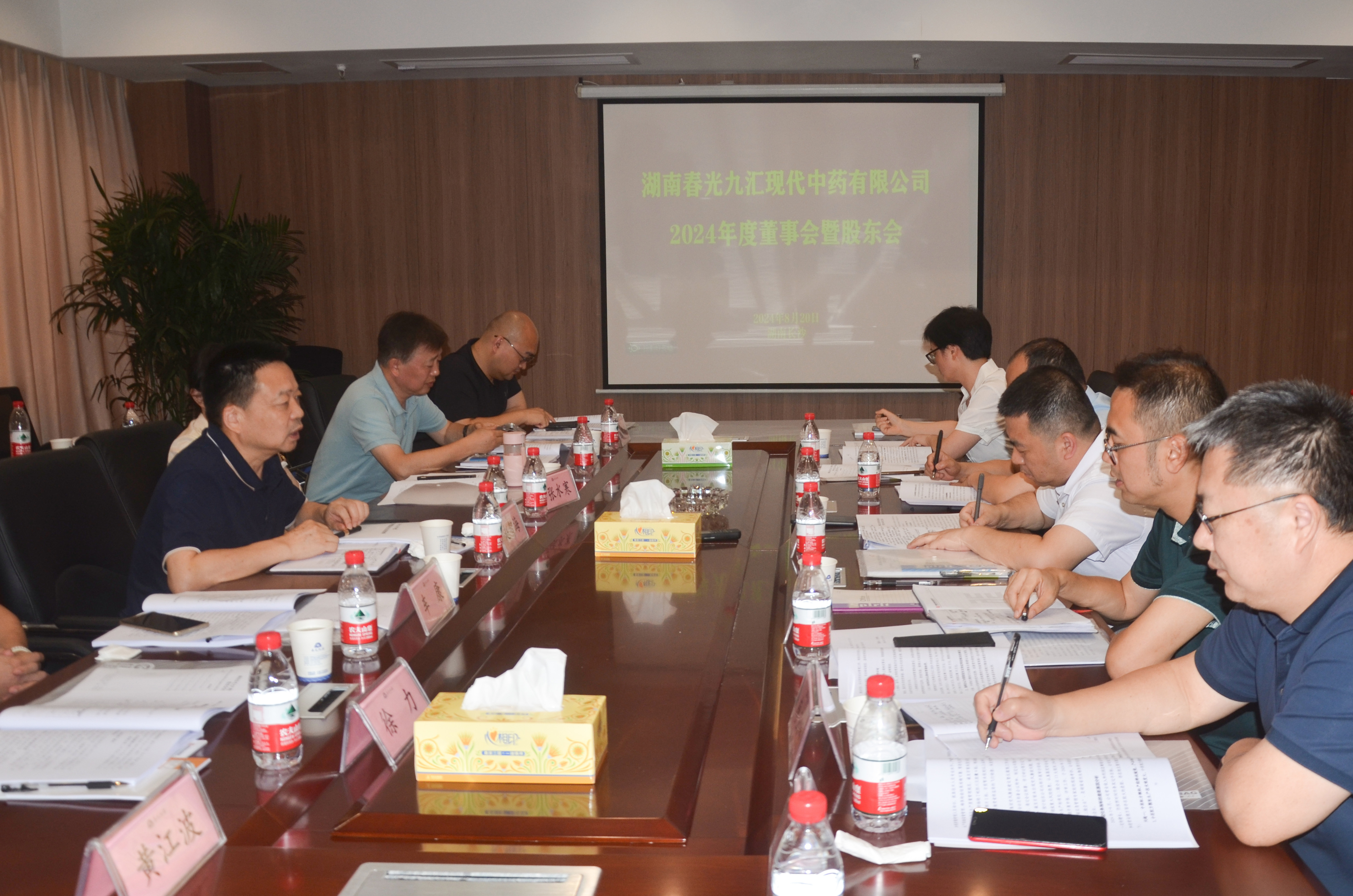 8月20日下午,公司2024年度股东会暨第六届董事会第十五次会议在公司营销中心顺利召开,湖南医药发展投资集团、省中医药研究院、湘江产业、香雪制药、康养基金委派的股东代表,多名自然人股东以及公司董事、监事参加会议,集团副总经理赵智海出席会议并讲话,公司党支部书记、董事长沈帆顺主持会议。